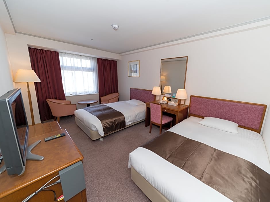 STANDARD TWIN SMOKING is 258 square feet and includes 2 single beds 80-130 width plus desk, satellite tv , hairdryer, and slippers and is Wheelchair-accessible.